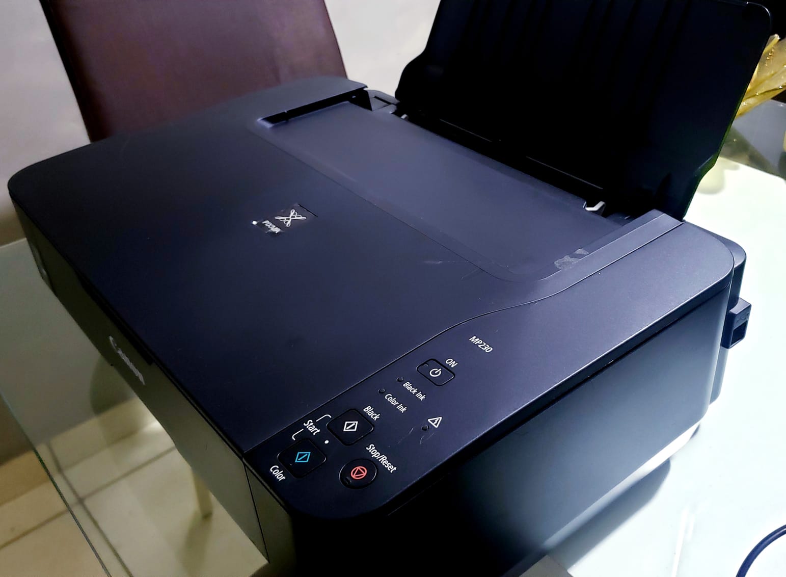 Impressora multifuncional Canon PIXMA MP230, ideal para uso doméstico e pequenos escritórios. Oferece impressão, cópia e digitalização em um único dispositivo. Fácil de usar e com boa qualidade de impressão.