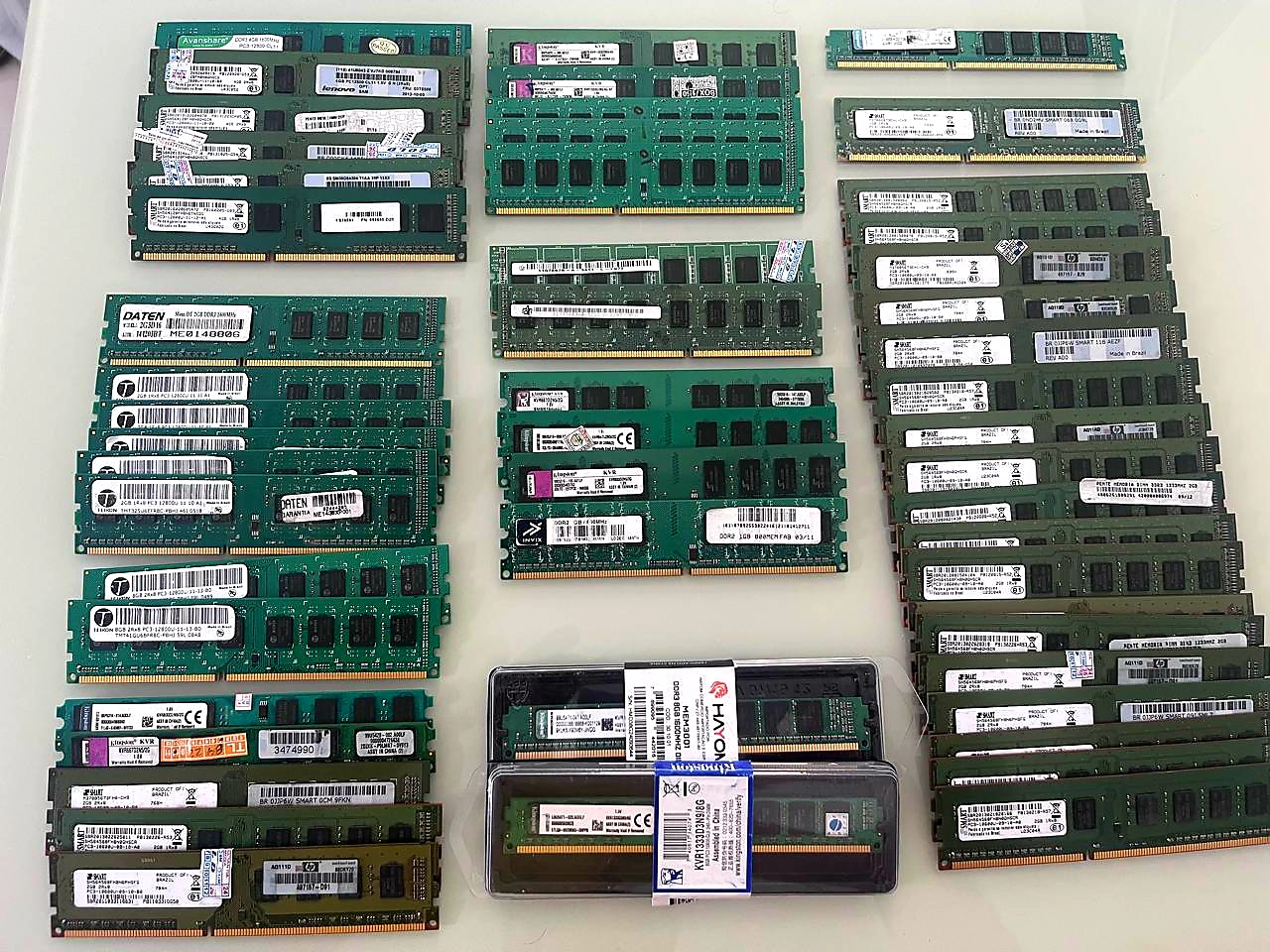 DDR2 1GB (1 unid) DDR2 2GB (5 unid) DDR3 1GB 1333 (1 unid) DDR3 2GB 1333 Smart (23 unid) DDR3 4GB 1333 (5 unid) DDR3 2GB 1600 (6 unid) DDR3 4GB 1600 (6 unid).